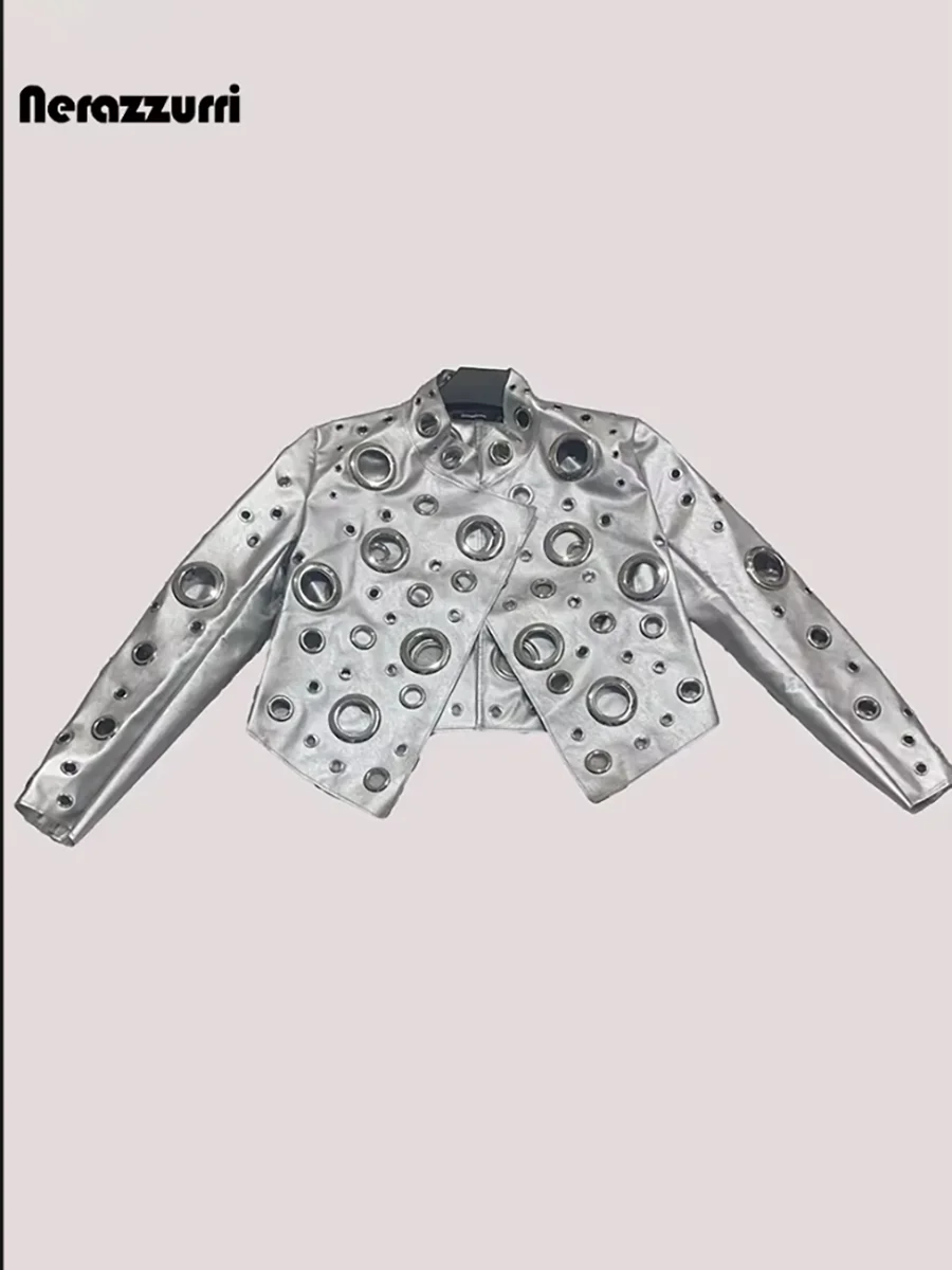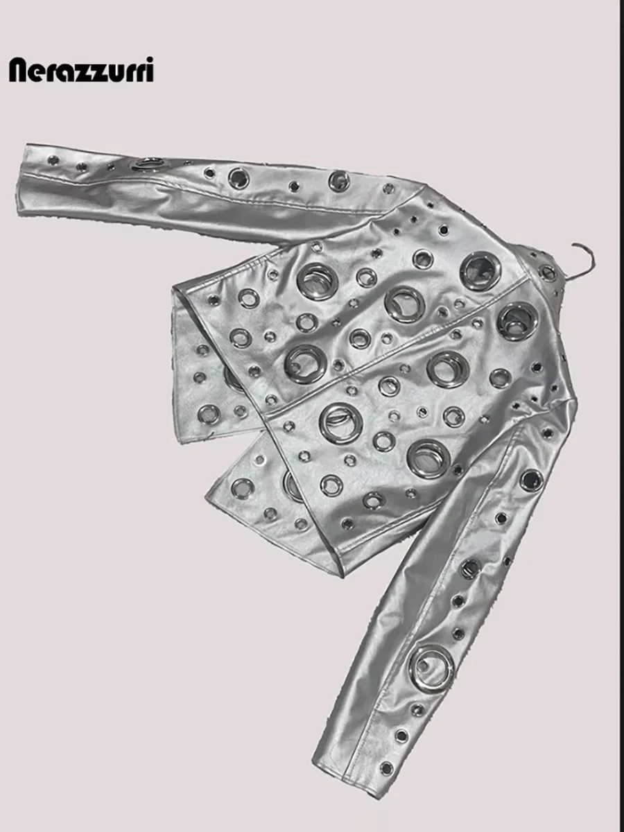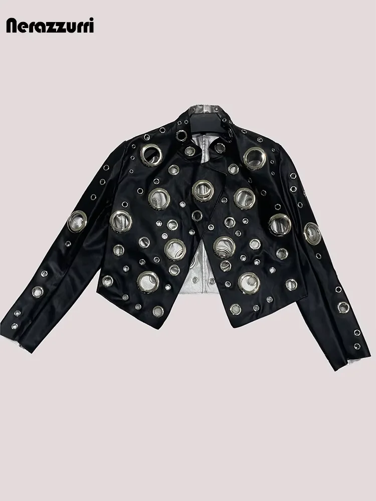 Be the first to review “Nerazzurri Autumn Short Hollow Out Patchwork Short Pu Leather Jacket Women Plus Size Luxury Designer Punk Style Streetwear 5xl”