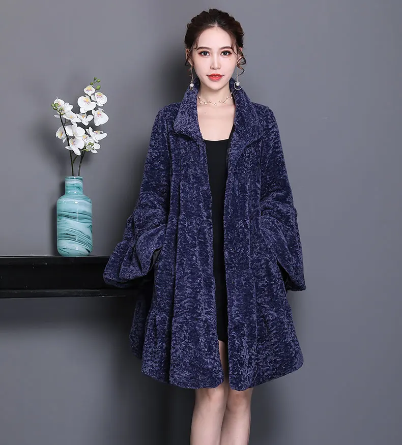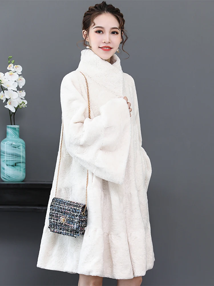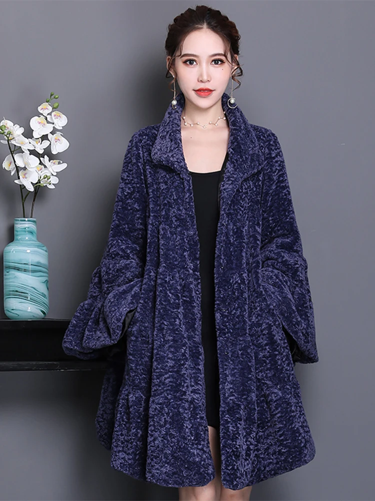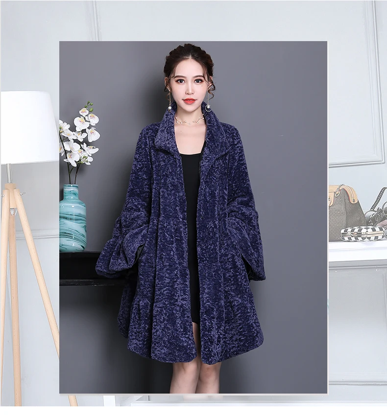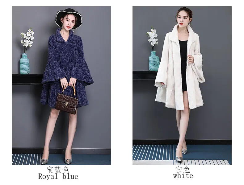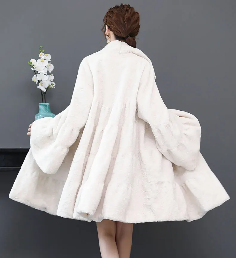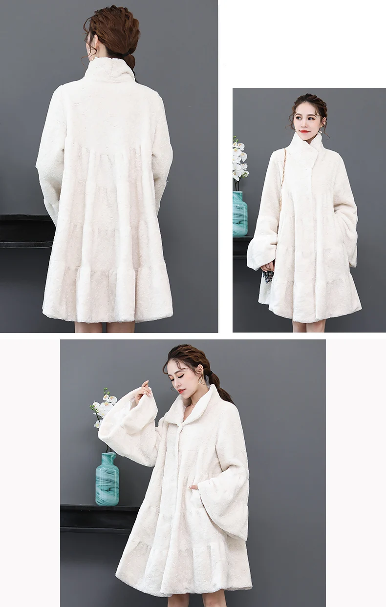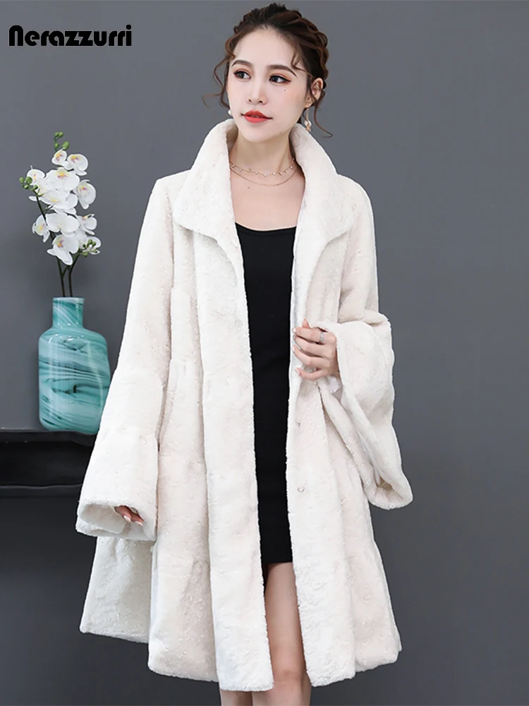 Nerazzurri Winter Luxury Runway faux fur coat women full skirt flare sleeve Fluffy faux shearling jacket Korean Fashion 2021